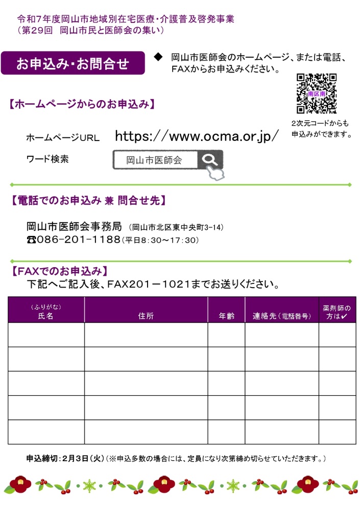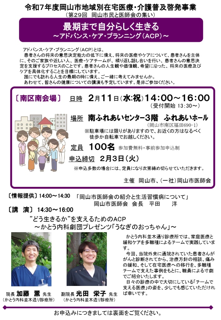 【募集】岡山市地域別在宅医療・介護普及啓発事業(第29回岡山市民と医師会の集い)のご案内